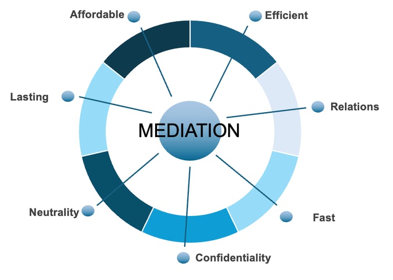 The mediator's role is to facilitate discussions by following a structured process designed to foster the emergence of a solution that meets everyone's needs — a solution that the parties themselves will have developed.