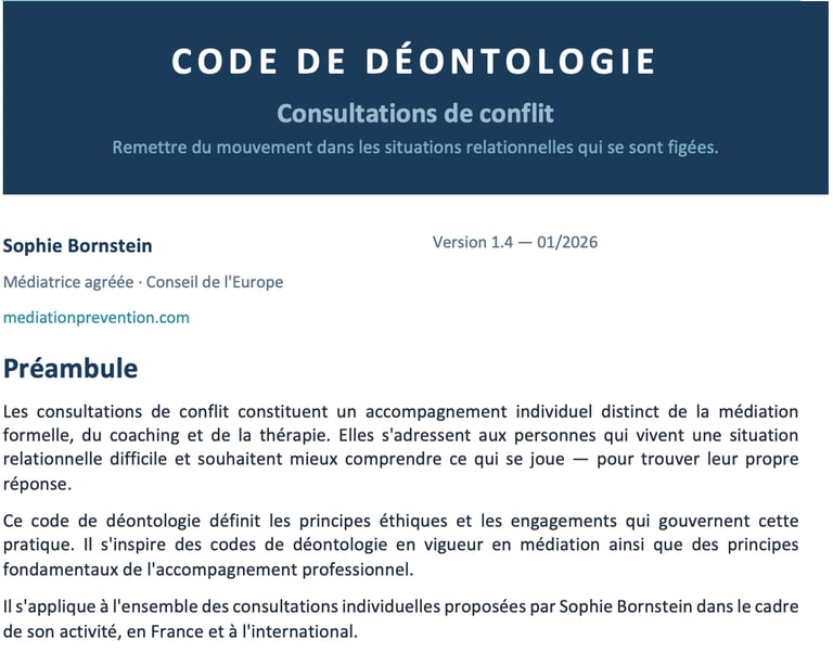 Le conflit installe une position familière : on subit, on réagit, on tourne en rond. La situation a échappé - et avec elle, le sentiment d'avoir prise sur ce qui se passe.